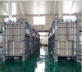 該裝置是由一定數(shù)量的膜組成的一系列結(jié)構(gòu)單元;其中每個(gè)單元有一張陰離子均相膜隔開成滲析室和擴(kuò)散室,采用逆流操作,在陰離子均相膜的兩側(cè)分別通入廢酸液及接受液(自來水)時(shí),廢酸液側(cè)的酸及其鹽的濃度遠(yuǎn)高于水的一側(cè),根據(jù)擴(kuò)散滲析原理,由于濃度梯度的存在,廢酸及其鹽類有向擴(kuò)散室滲透的趨勢,但膜對陰離子具有選擇透過性,故在濃度差的作用下,廢酸側(cè)的陰離子被吸引而順利地透過膜孔道進(jìn)入水的一側(cè)。同時(shí)根據(jù)電中性要求,也會(huì)夾帶陽離子,由于H+的水化半徑比較小,電荷較少;而金屬鹽水化半徑較大,電荷較多,因此H+會(huì)優(yōu)先通過膜,這樣廢液中的酸就會(huì)被分離出來。